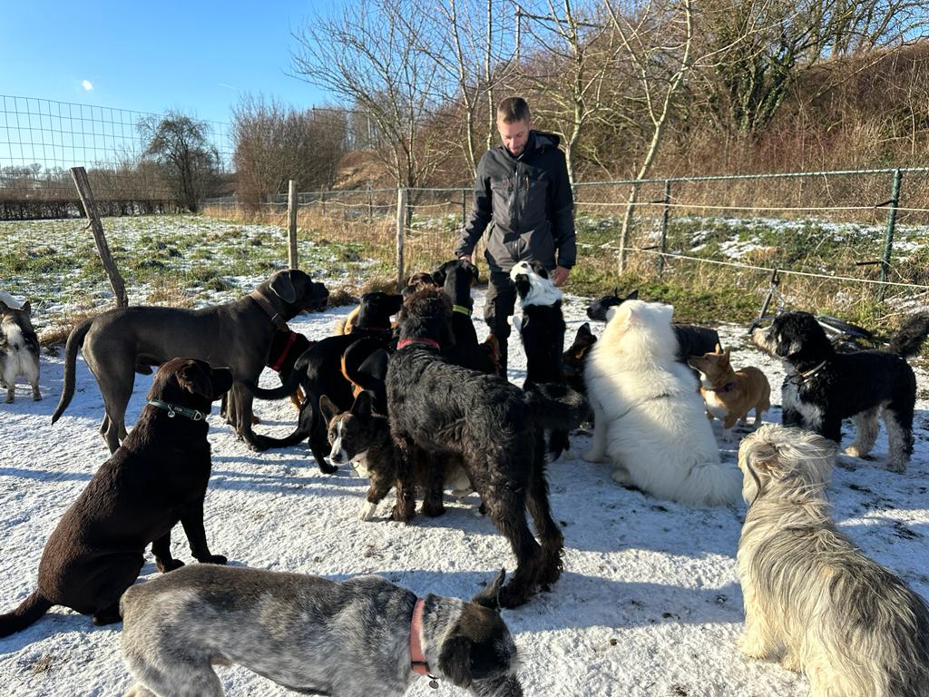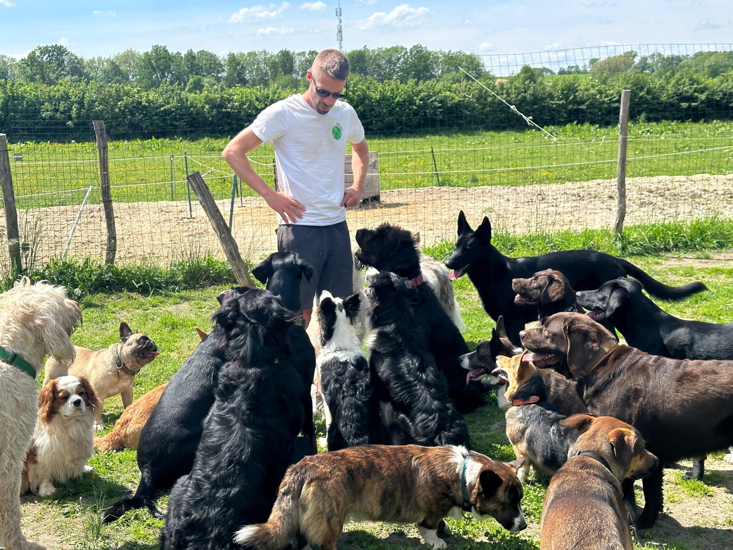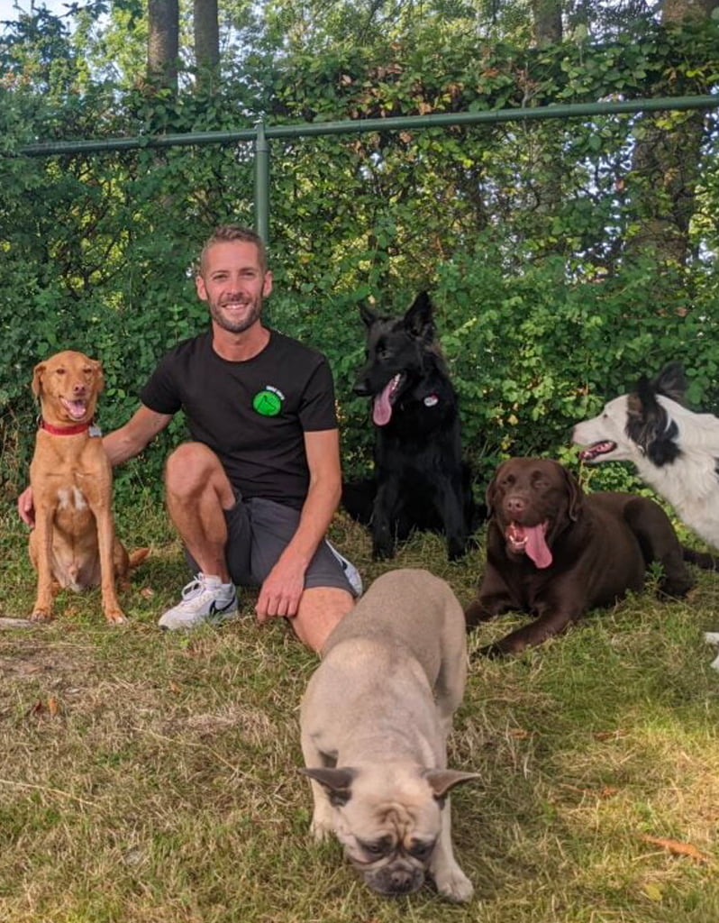 Ik ben Mark en ik ben de trotse vader van twee dochters en groepsgenoot van mijn twee border collies. Ik heb van mijn passie mijn werk kunnen maken en werk sinds 2022 dagelijks met honden samen. Ik sta tussen, werk samen of loop met honden (variërend van 1 tot 35 honden). Daarnaast heb ik twee jaar lang groepstrainingen verzorgd. Ik ben ervan overtuigd mensen en honden beter te kunnen helpen met het vinden van balans door individuele aandacht, daarom geef ik momenteel alleen nog 1 op 1 workshops en trainingen.